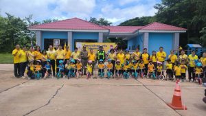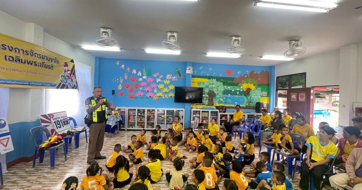 พร้อมด้วยเจ้าหน้าที่ตำรวจจราจร ออกปฏิบัติหน้าที่ในการอบรมให้ความรู้เกี่ยวกับกฎหมายจราจร การขับขี่รถให้ปลอดภัย และประชาสัมพันธ์การรับแจ้งเหตุ 191 ตามโครงการจักรยานขาไถ เฉลิมพระเกียรติ (กิจกรรมพัฒนาผู้เรียนรู้) ประจำปี 2567ณ องค์การบริหารส่วนตำบลนาขมิ้น อำเภอโพนสวรรค์ จังหวัดนครพนม