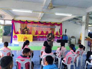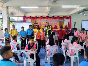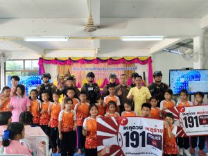 พร้อมด้วย สายตรวจรถยนต์/รถจักรยานยนต์ และ ชุด จร. ออกประชาสัมพันธ์กฏหมายจราจรเบี้องต้นแนะนำการเอาตัวรอดจากเหตุบุคคลคลุ้มคลั่งกราดยิงด้วยอาวุธปืน(Activeshooter) ณ โรงเรียนบ้านโพนบก ต.โพนบก อ.โพนสวรรค์
