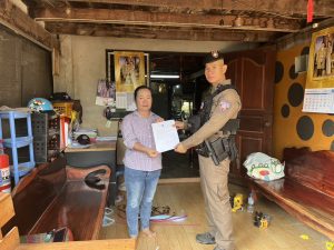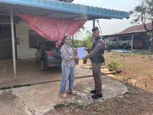 วันที่ 8 เม.ย.2568 เวลา 10.30 น.พ.ต.อ.ดร.เดช นิมิตร ผกก.สภ.โพนสวรรค์พ.ต.ท.ณธีพัฒน์ พุฒิชัยเจริญรอง ผกก.ป.สภ.โพนสวรรค์พ.ต.ท.นพดล รัตนตรัยวงศ์สวป.สภ.โพนสวรรค์ได้สั่งการให้ร.ต.อ.สุวัจน์ แก้วกาหลง พร้อมสายตรวจรถยนต์ นำส่งหนังสือประชาสัมพันธ์ มาตรการคุมเข้มอุบัติเหตุห้วงสงกรานต์ ๗ วันอันตราย ให้กับกำนันและผู้ใหญ่บ้าน ในเขตพื้นที่ ตำบลนาใน