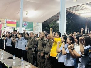 วันที่ 11 มีนาคม 2568 เวลา 18.00 น. พ.ต.อ.ดร.เดช นิมิตร ผกก.สภ.โพนสวรรค์พ.ต.ท.ณธีพัฒน์ พุฒิชัยเจริญ รอง ผกก.ป.สภ.โพนสวรรค์ พ.ต.ท.นพดล รัตนตรัยวงศ์ สวป.สภ.โพนสวรรค์ พร้อมชุดปฎิบัติการตำบลยั่งยืน ฯ ลงพื้นที่รับฟังปัญหาที่เกิดขึ้นภายในหมู่บ้านเพื่อหาทางแก้ไขปัญหาร่วมกับ ฝ่ายปกครอง,กต.ตร.สภ.โพนสวรรค์,เจ้าหน้าที่สาธารณะสุข เจ้าหน้าที่ รพ.โพนสวรรค์ ผู้นำชุมชน,อสม.ประจำหมู่บ้าน และชาวบ้าน หมู่ 2, 3, 10 และ 13 ต.โพนสวรรค์ อ.โพนสวรรค์ จว.นครพนม ทำความเข้าใจร่วมกันเกี่ยวกับโครงการ(ทำประชาคม)ก่อนเข้าดำเนินโครงการดำเนินงานตำบลยั่งยืนเพื่อแก้ไขปัญหายาเสพติดแบบครบวงจรตามยุทธศาสตร์ชาติ ประจำปีงบประมาณ 2568 ณ ศาลาประชาคมบ้านเสาเล้าเหนือ ม.10 ต.โพนสวรรค์ อ.โพนสวรรค์