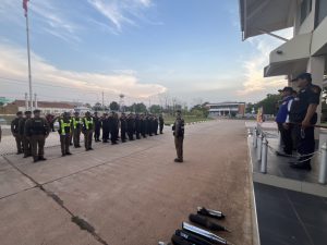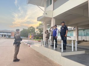 ร.ต.อ.สุวัจน์ แก้วกาหลง รอง สวป. ร้อยเวร 20 พร้อม สายตรวจ,จราจรร่วมปล่อยแถว หน้าที่ว่าการอำเภอ เพื่อร่วมระดมการตั้ง ว.๔๓ กวดขัน การขับรถ จยย.เสียงดัง โดยมี นายณัฐวุฒิ ชัยสิทธิ์ นายอำเภอโพนสวรรค์ เป็นประธานในพิธี