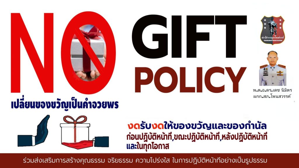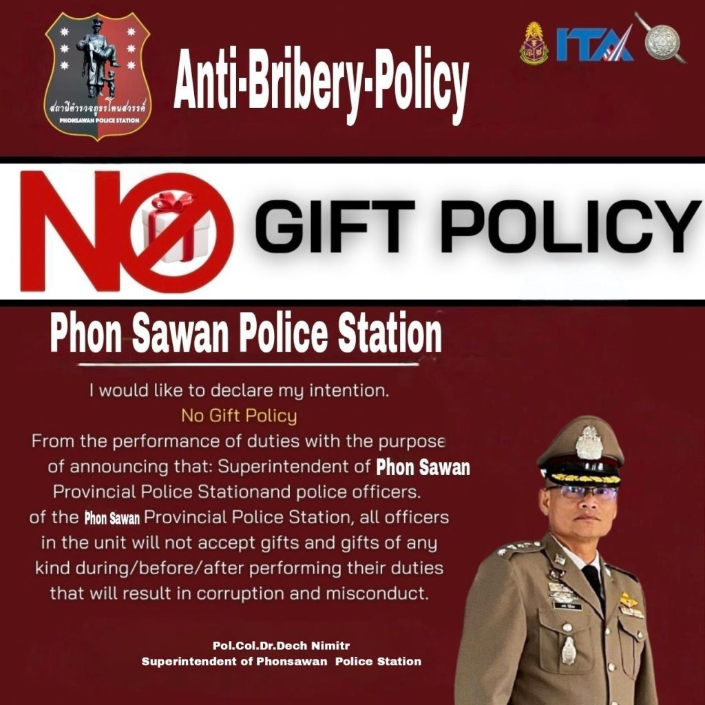 ประกาศนโยบายต่อต้านการรับสินบน (Anti-Bribery Policy) และนโยบายไม่รับของขวัญและของกำนัลทุกชนิด (์No Gift Poligy) จากการปฏิบัติหน้าที่ ของสถานีตำรวจภูธรโพนสวรรค์